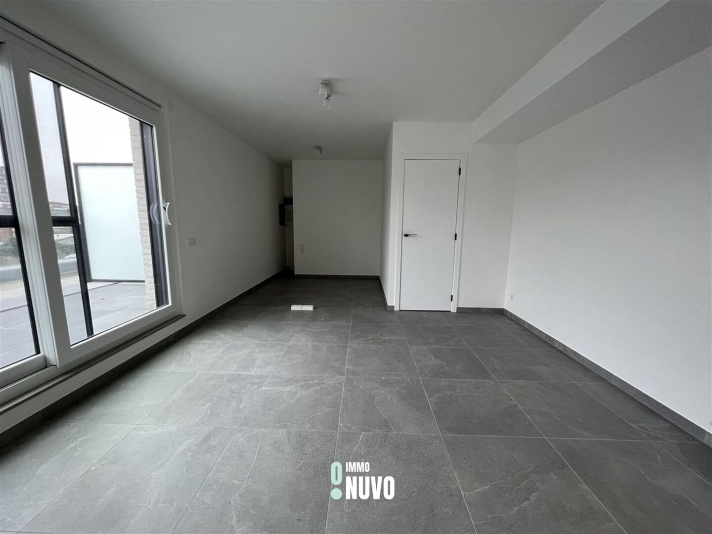Superbe studio éco-énergétique au 1er étage, fini avec des matériaux de qualité et beaucoup de lumière, situé dans un petit immeuble d'appartements dans un quartier résidentiel agréable en bordure verte de Aalst. Aménagé avec un hall d'entrée, un espace de vie spacieux avec un coin nuit, une cuisine ouverte entièrement équipée, une salle de bain avec douche à l'italienne, un débarras et une grande terrasse. Place de parking souterraine et rangement en cave inclus dans le prix. Un espace de rangement pour vélos et des déchets sont également disponibles.