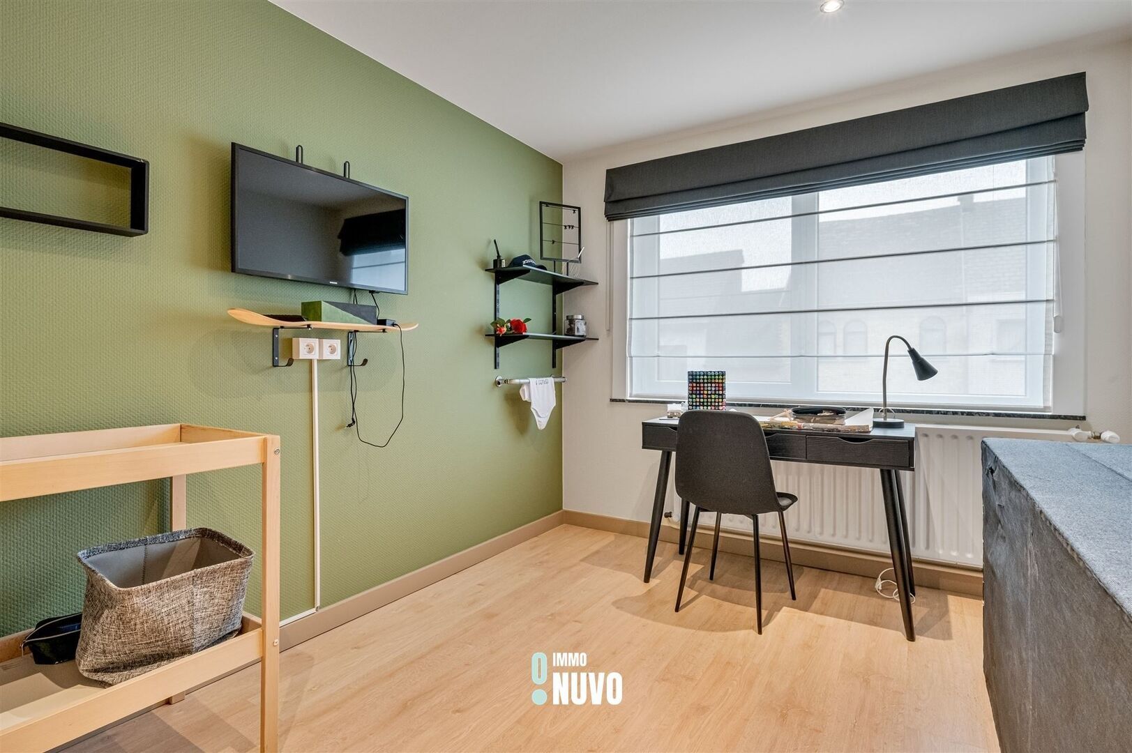 La maison spacieuse et bien entretenue comprend un hall d'entrée, un espace de vie lumineux et agréable avec une cuisine ouverte meublée de manière intemporelle, une chambre de rangement et un garage intérieur avec porte automatique, un espace de rangement supplémentaire et des toilettes.