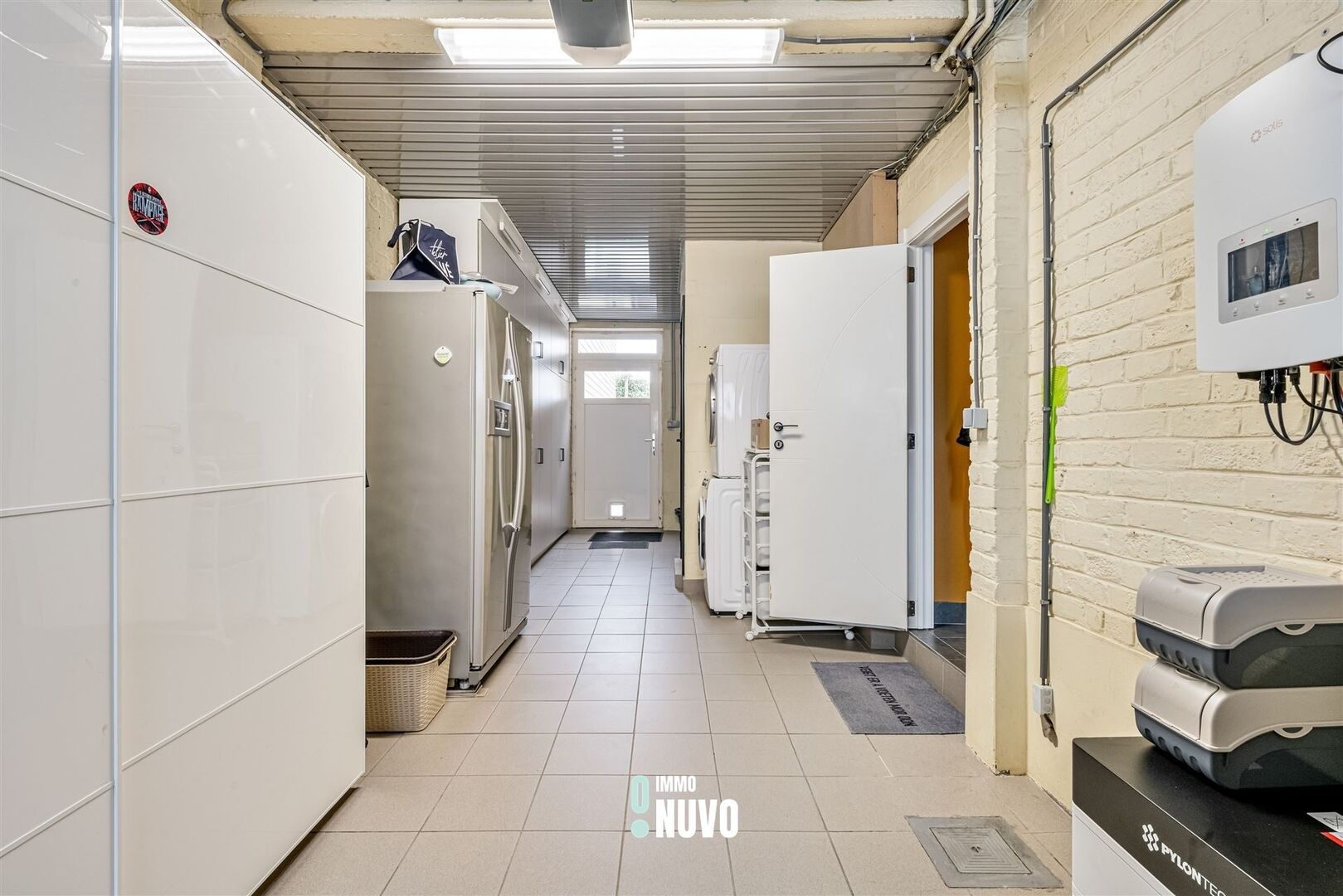 La maison spacieuse et bien entretenue comprend un hall d'entrée, un espace de vie lumineux et agréable avec une cuisine ouverte meublée de manière intemporelle, une chambre de rangement et un garage intérieur avec porte automatique, un espace de rangement supplémentaire et des toilettes.