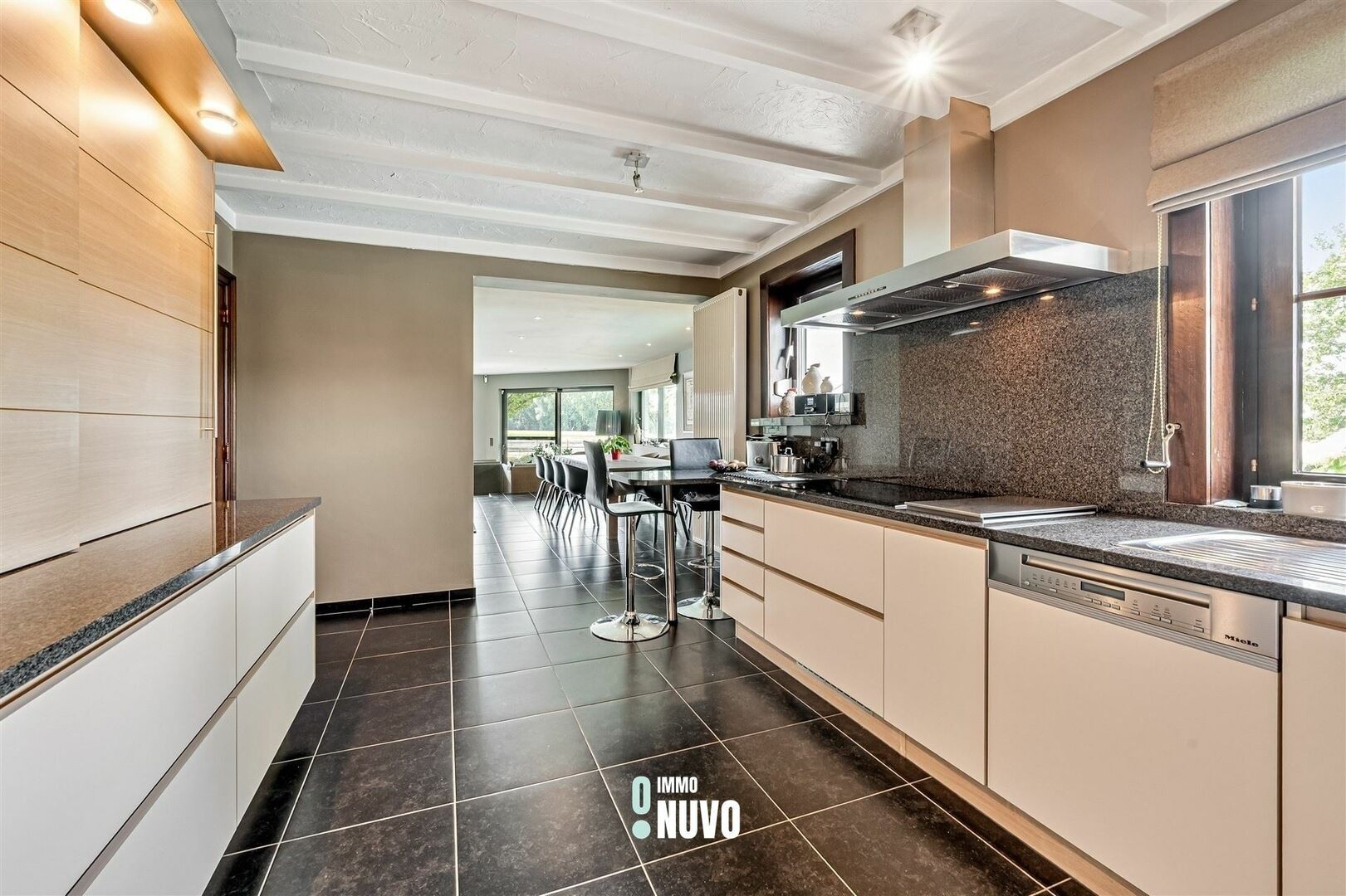 Cuisine équipée avec vue sur le jardin