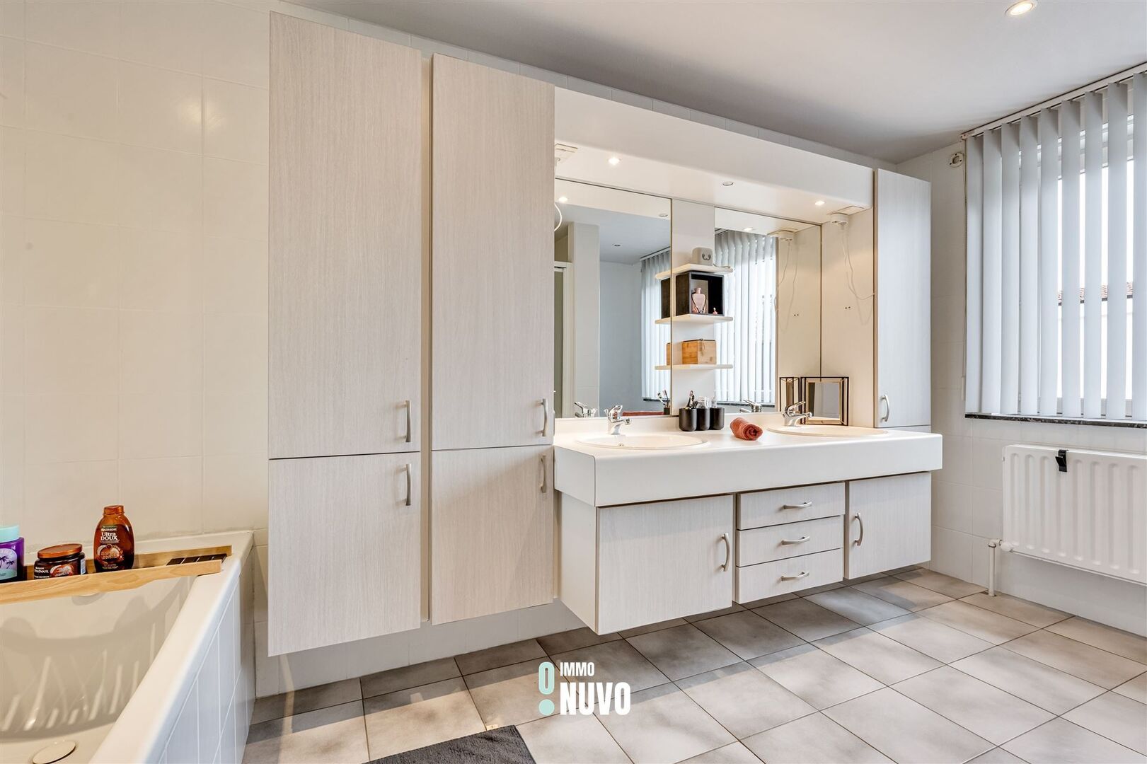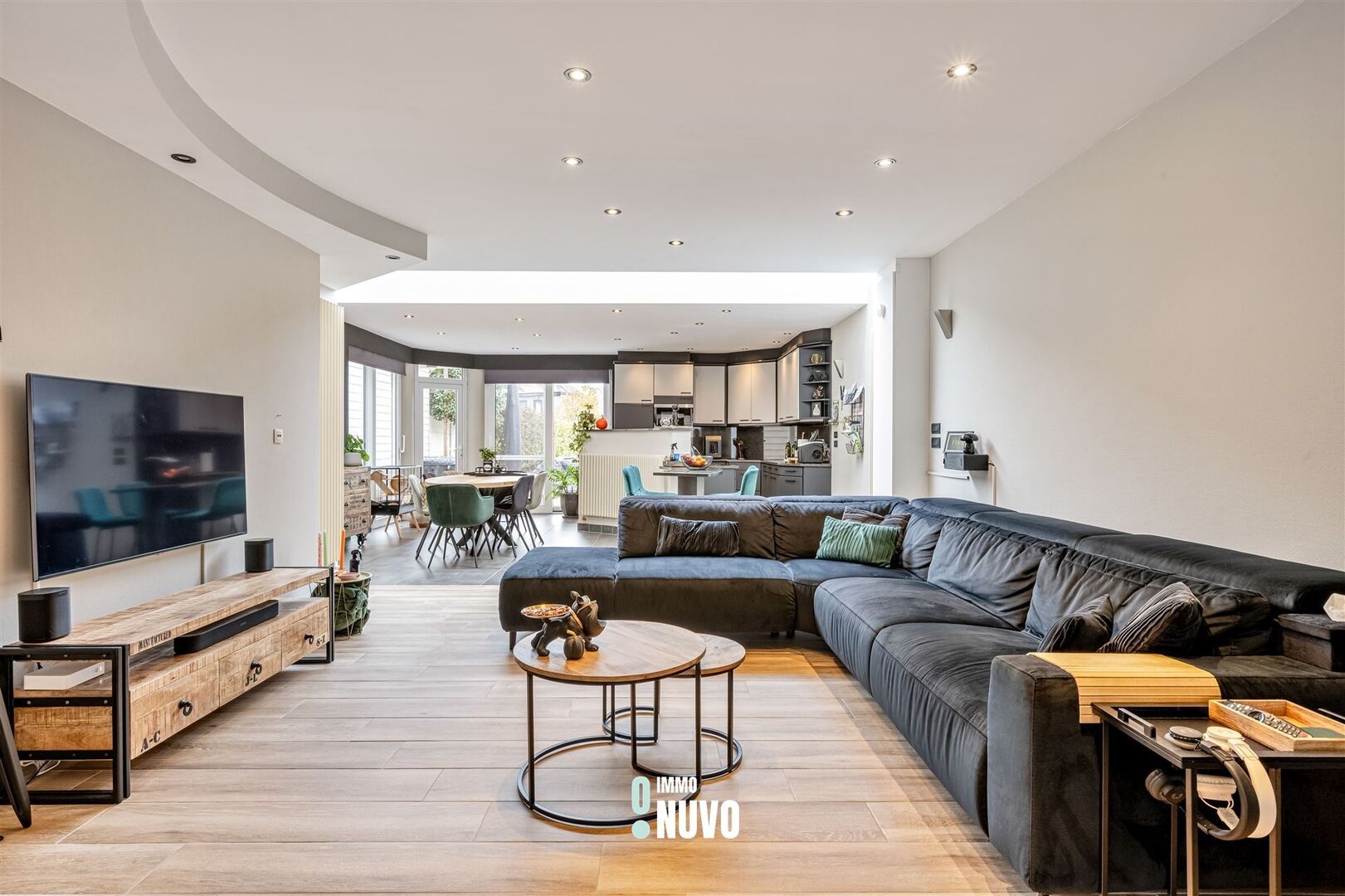 De ruime, verzorgde woning omvat een inkomhal, een lichte en aangename leefruimte met open, tijdloze ingerichte keuken, een berging en een inpandige garage met automatische poort, extra berging en toilet. Alsook een droge kelder.