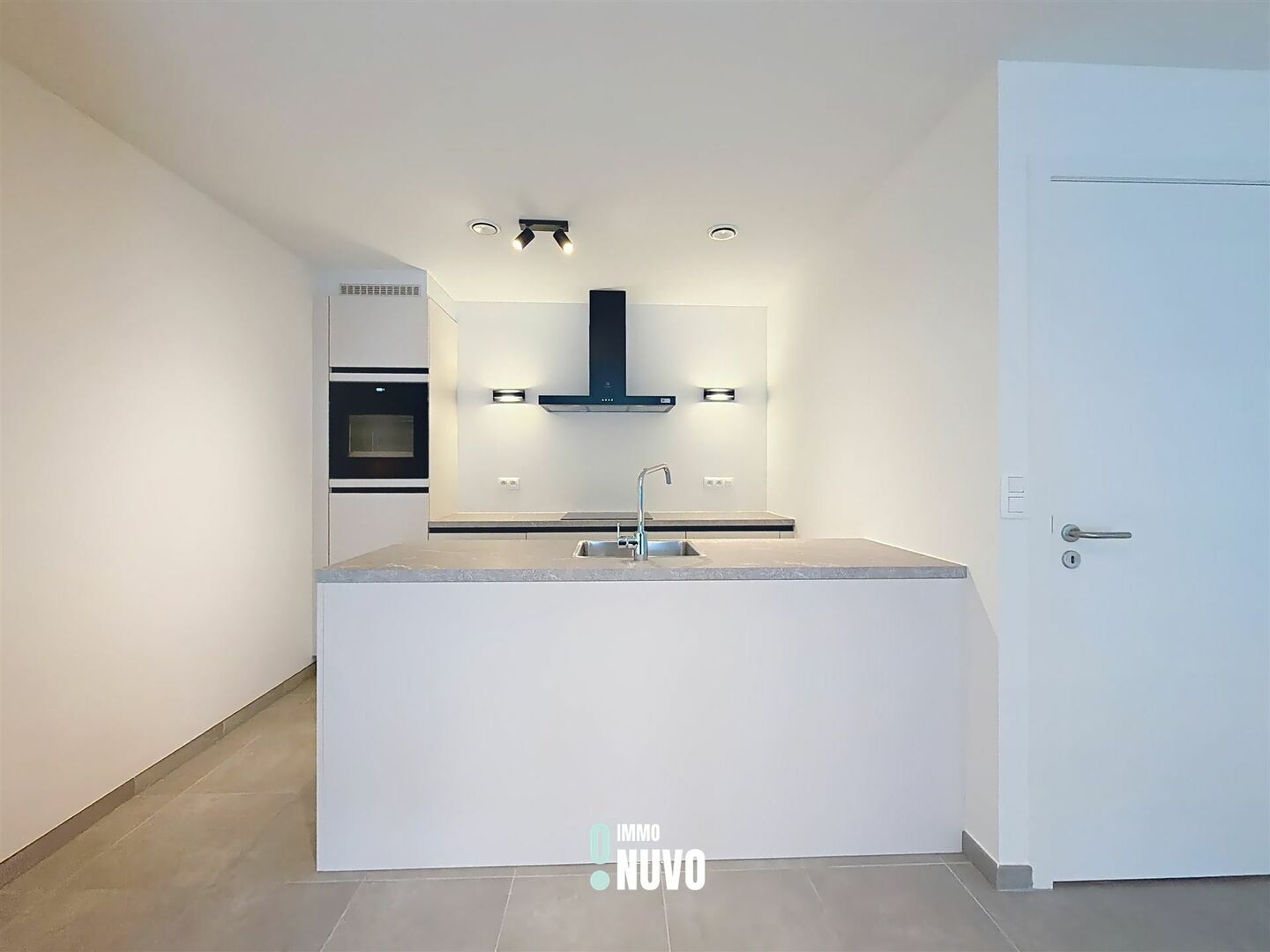 De moderne keuken sluit aan op de leefruimte en biedt alle hedendaags comfort. Dankzij de grote raampartijen geniet het appartement van veel natuurlijk licht en een aangename sfeer.