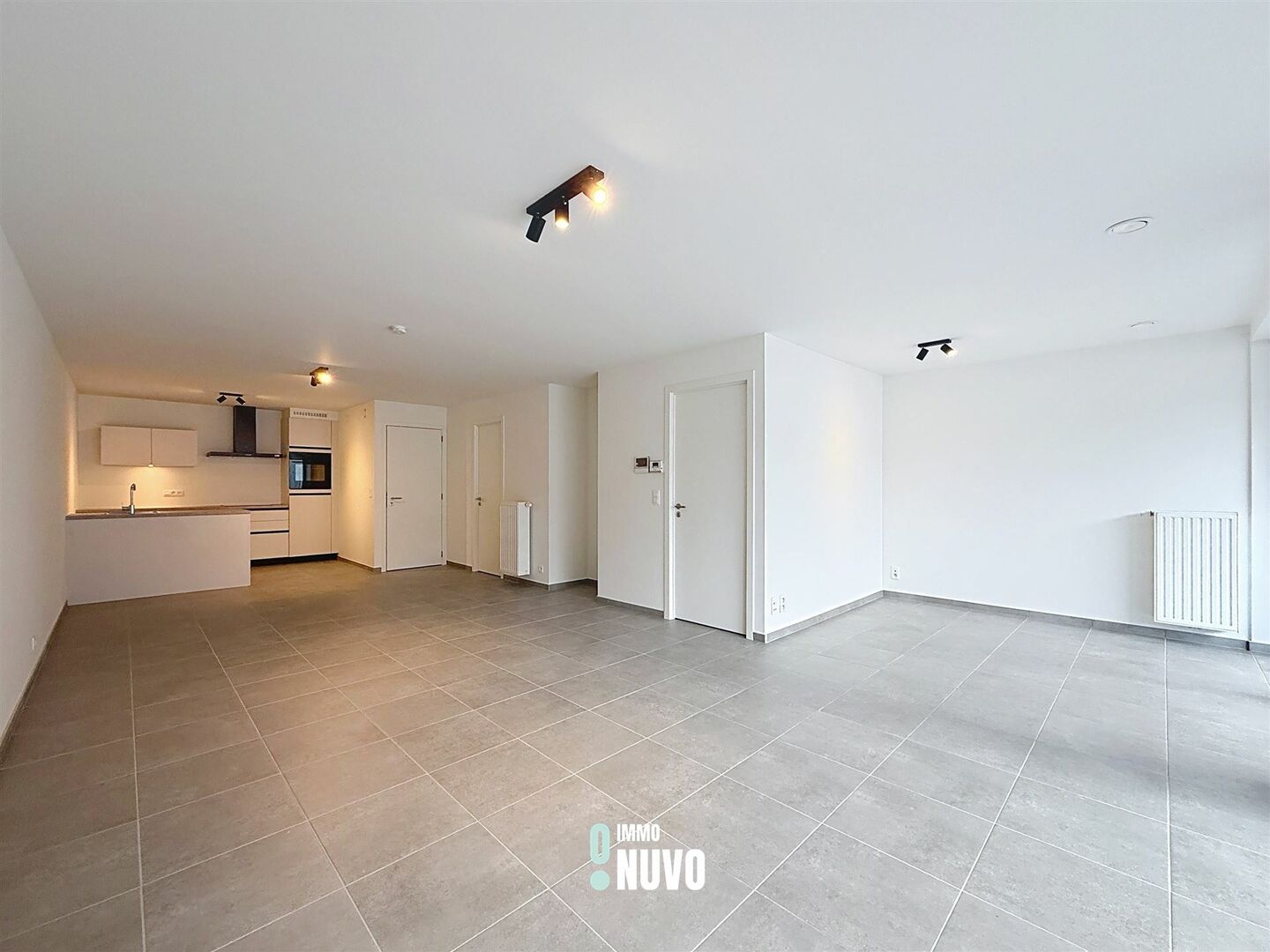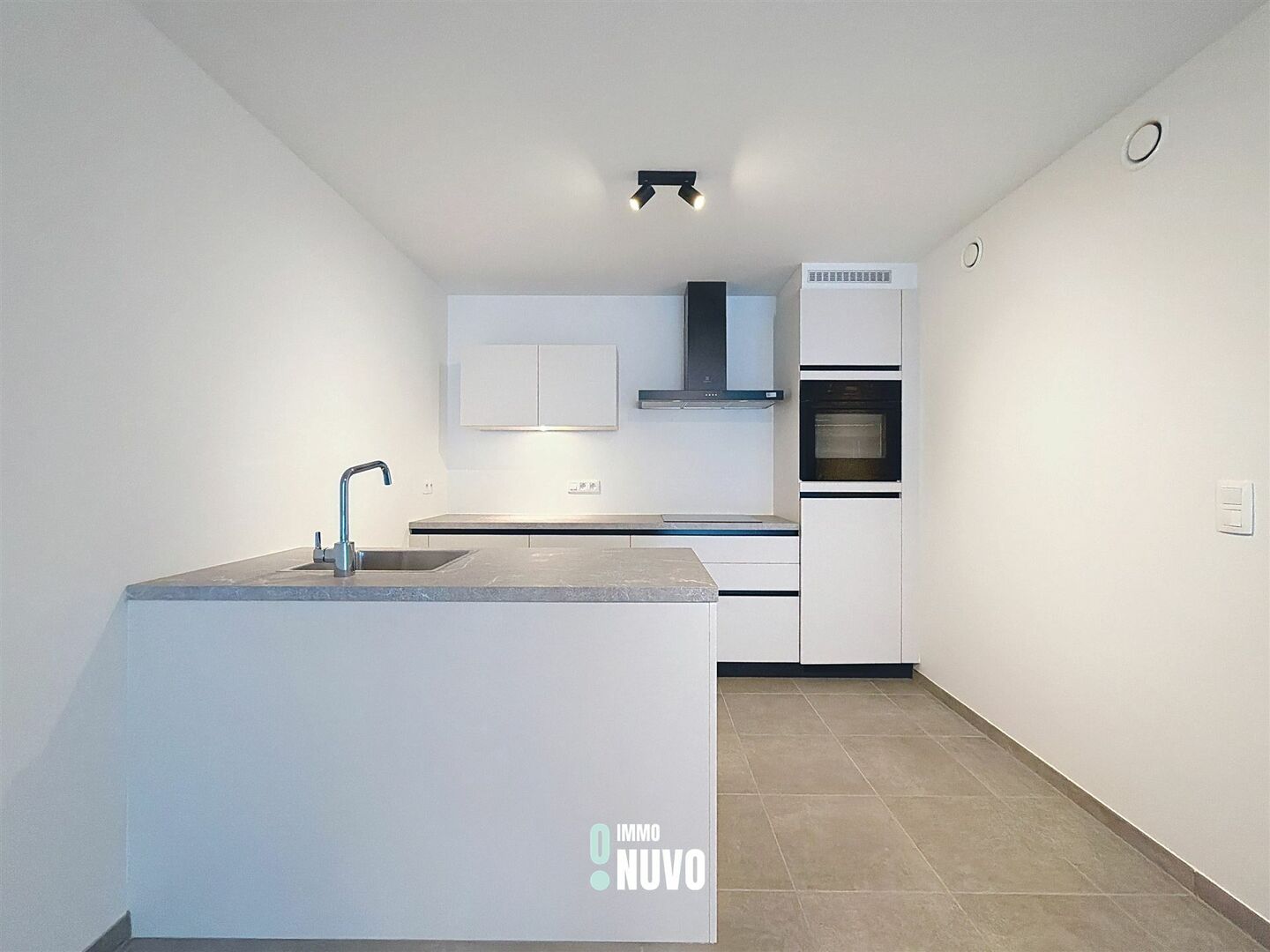 De moderne keuken sluit aan op de leefruimte en biedt alle hedendaags comfort. Dankzij de grote raampartijen geniet het appartement van veel natuurlijk licht en een aangename sfeer.