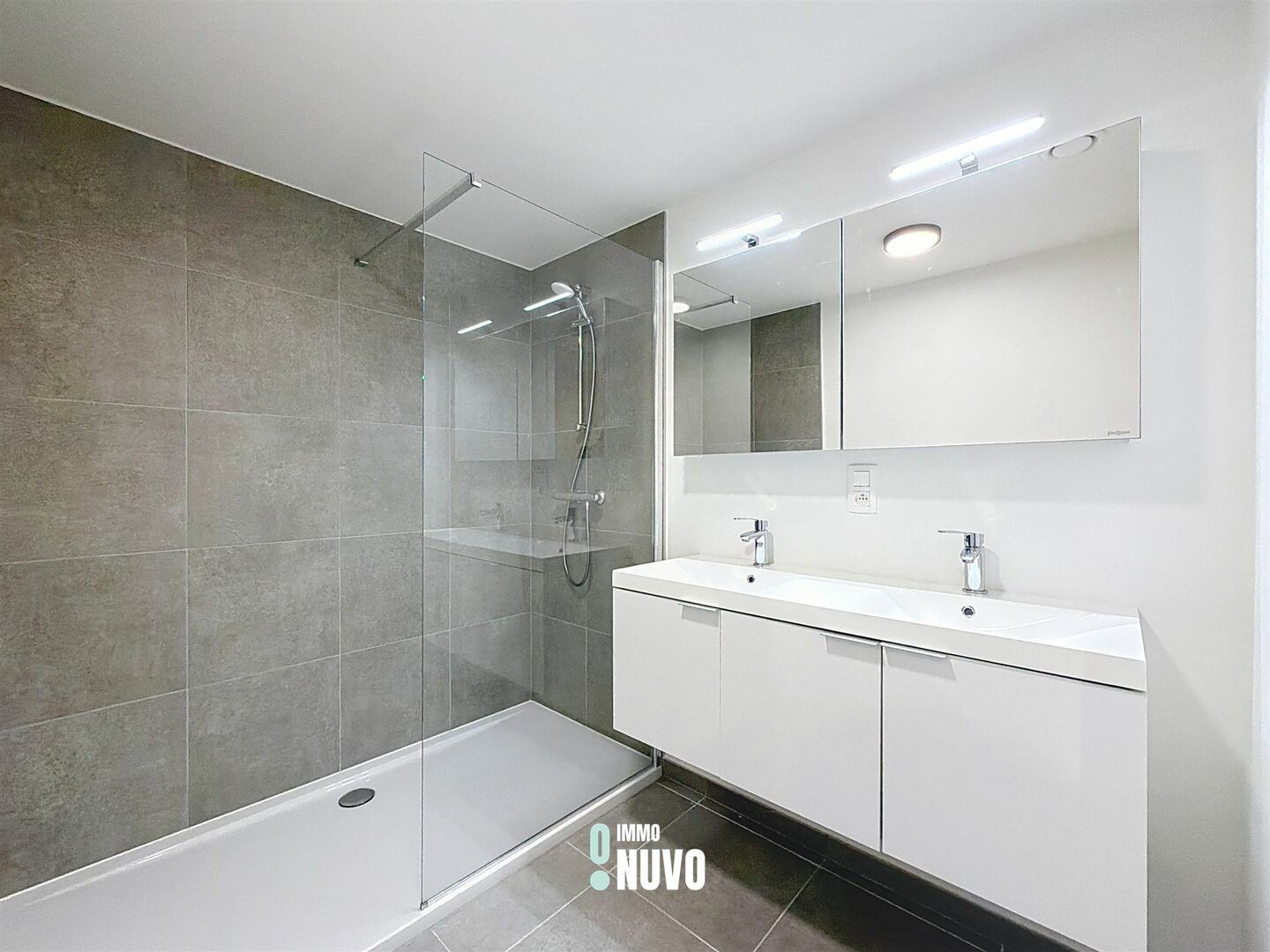 Het appartement beschikt over twee volwaardige slaapkamers en een ingewerkte bureauhoek, ideaal voor thuiswerk of studeren. De badkamer is stijlvol afgewerkt en voorzien van een dubbele lavabo en een ruime douche.