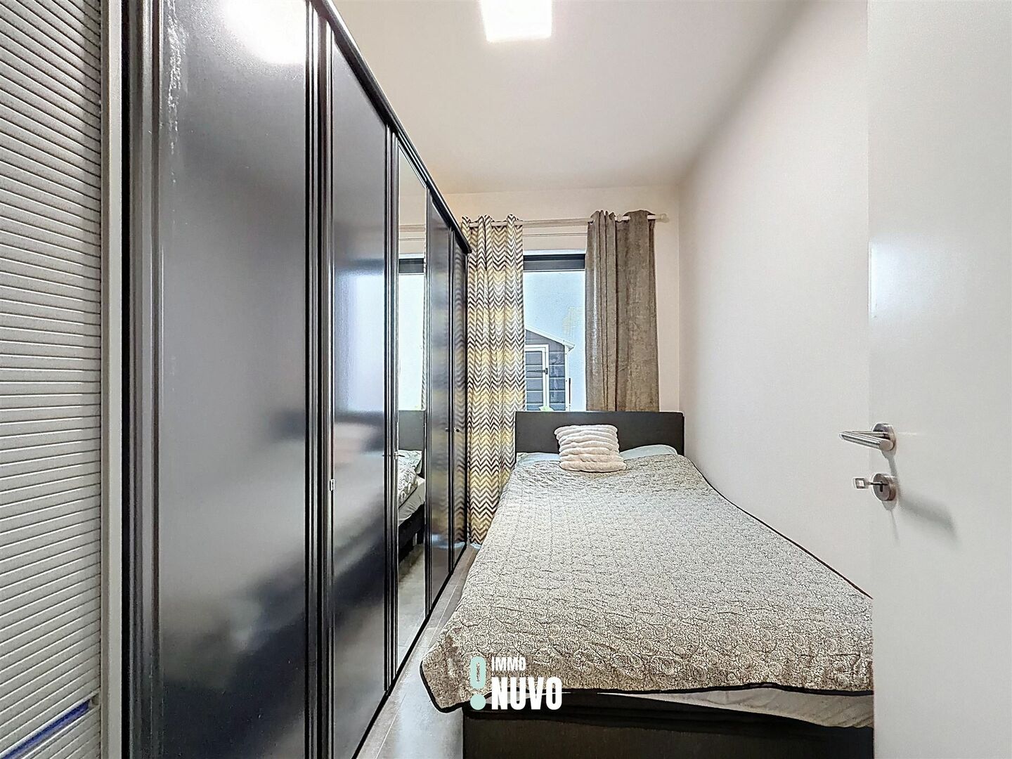 Het appartement heeft een praktische indeling. Achteraan liggen 2 slaapkamers, beide met directe toegang tot het stadsterras. De badkamer is uitgerust met een inloopdouche en een enkel lavabo met meubel. Daarnaast is er een praktische berging en apart toilet. De lichtrijke leefruimte vooraan met de open keuken, maakt van het appartement een gezellig geheel.