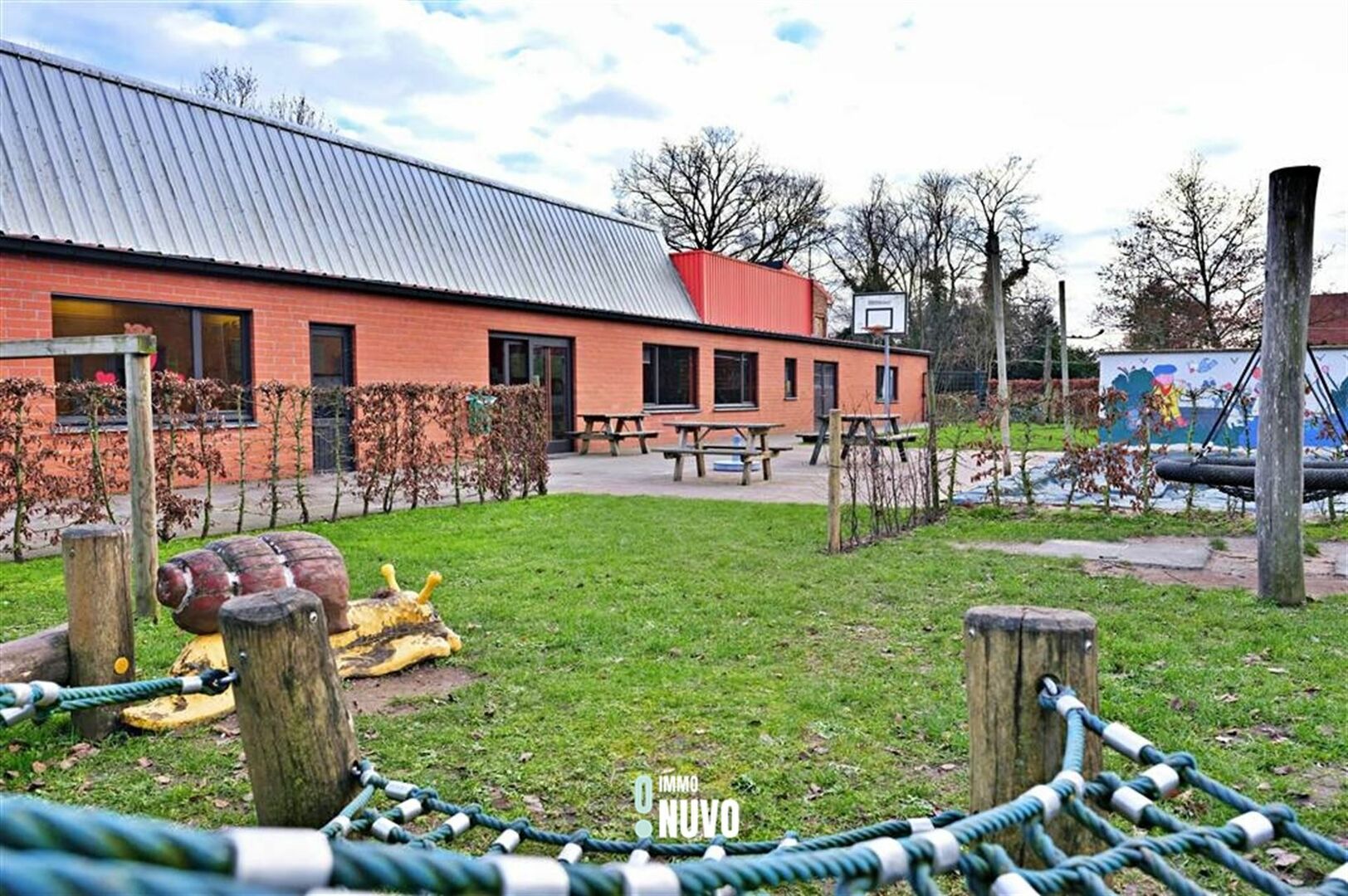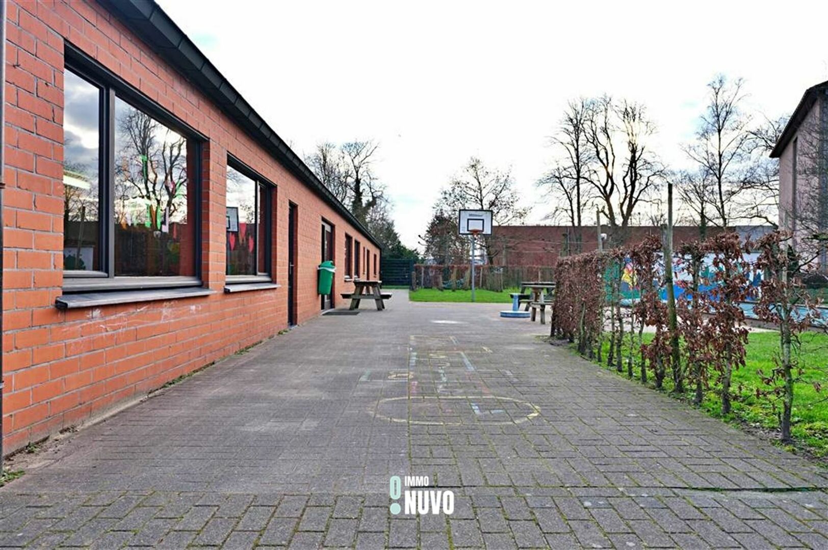 (inclusief directeurswoning, bureelgebouw, afgesloten speelplaats vooraan, bijgebouw met elektriciteitscabine, verharde speelplaats aan zijde