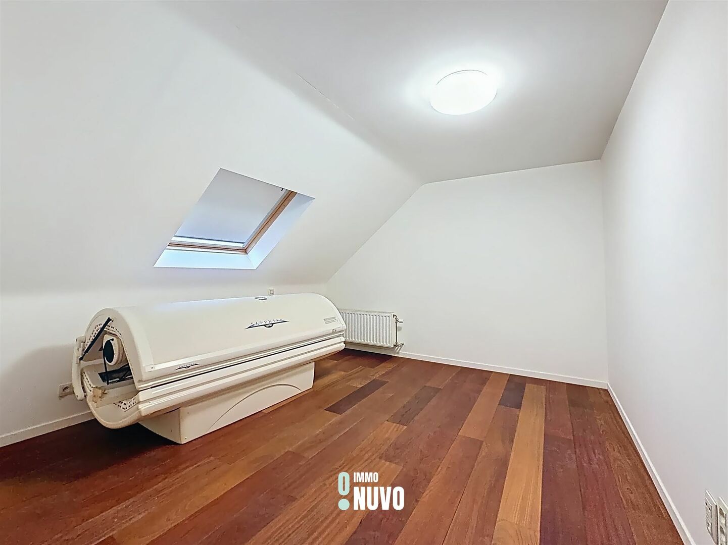 Op de eerste verdieping zijn er een ruime slaapkamer en een grote badkamer met inloopdouche, bubbelbad, dubbele lavabo en toilet.