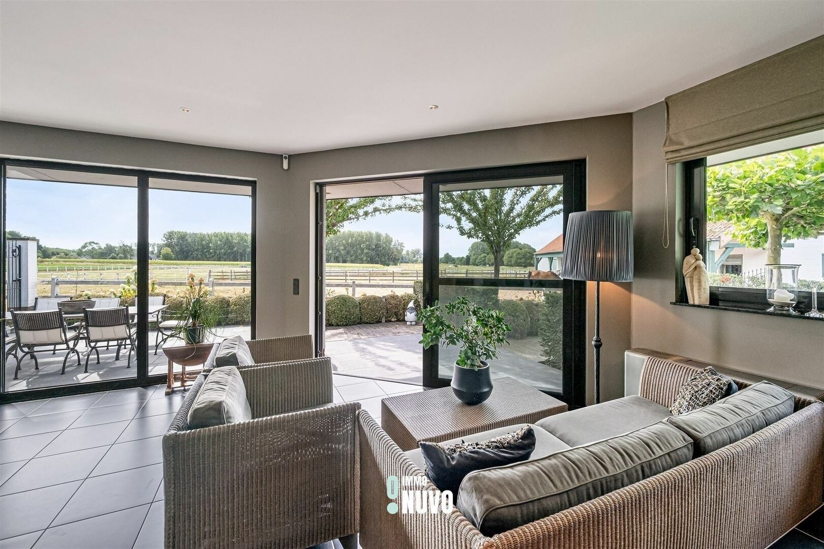 - Via de living komt u op het terras met zicht op de weilanden